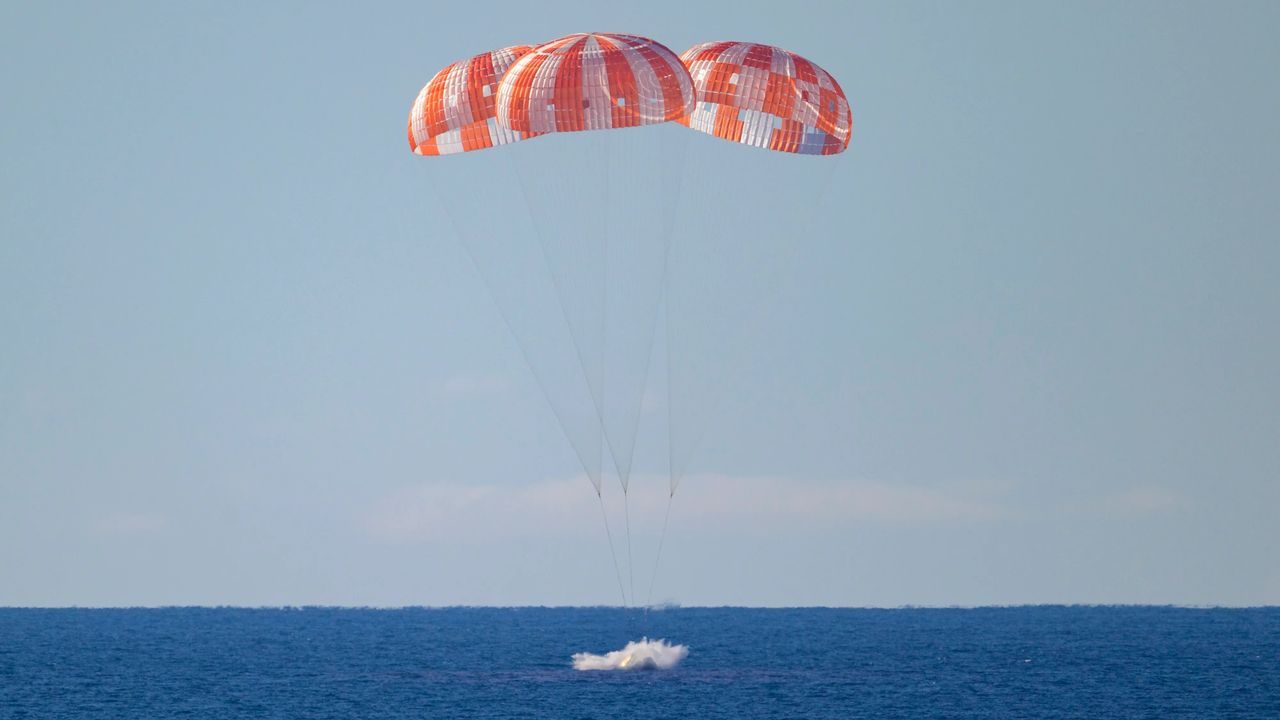 The Orion capsule splashed down in the Pacific Ocean just off the coast of San Diego, California, in what was described as a bullseye landing.