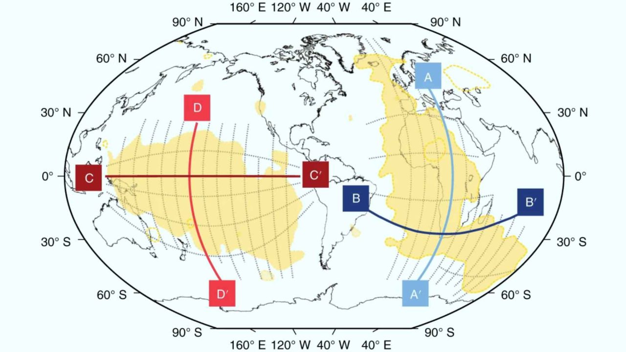 Using those methods, researchers have identified two enormous structures sitting at the base of the mantle, approximately 2,900 kilometers below the surface. One lies beneath Africa. The other sits under the Pacific Ocean. Both appear significantly hotter than the surrounding mantle rock, and both are roughly continental in scale.