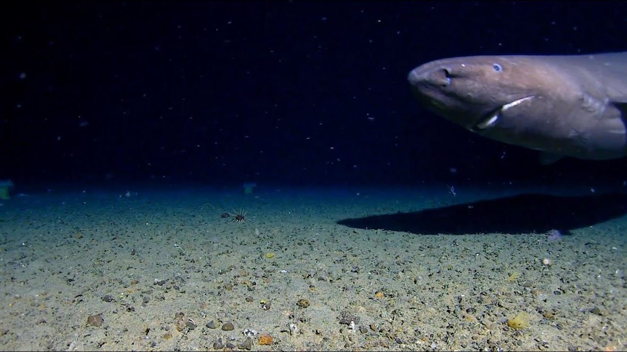 The footage estimates the animal at somewhere between 10 and 13 feet long. It belongs to the family Somniosidae, commonly known as sleeper sharks — a group of deep-sea sharks known for their slow movements and ability to endure cold, high-pressure environments. Sleeper sharks are part of the broader classification called elasmobranchs, which includes sharks, rays, and skates.